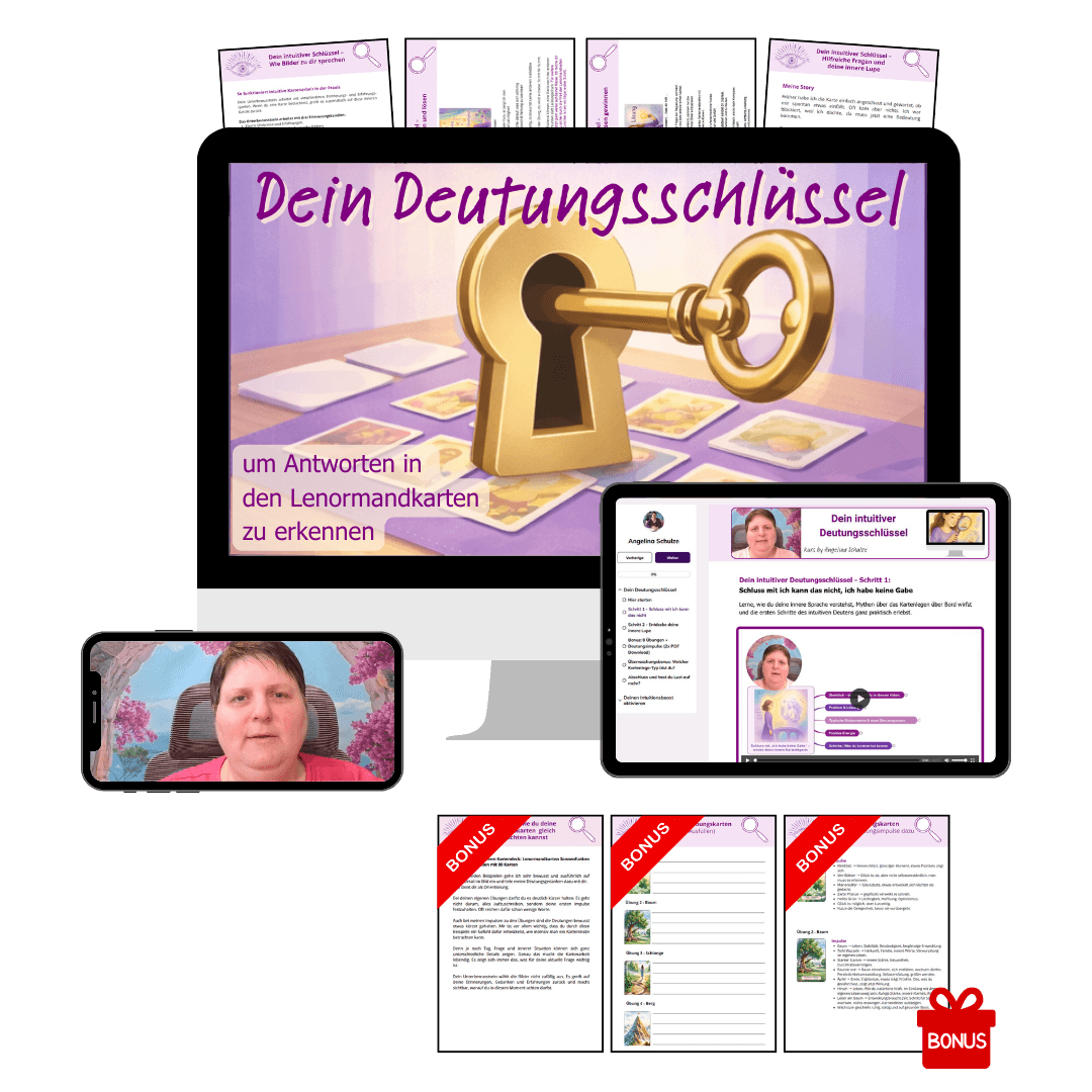 Ein leicht verständlicher Online-Kurs, in dem du lernst, die Antworten in deinen Lenormandkarten zu erkennen. Und das ganz ohne Auswendiglernen, ohne starren Lehrplan und ohne Druck.
