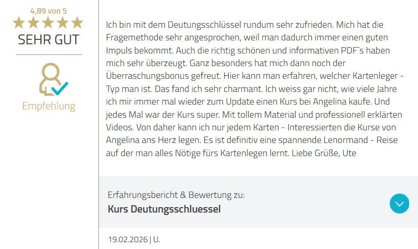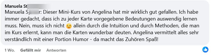 👉 Genau das brauchst du hier nicht. In diesem Kurs lernst du, aus dir heraus zu deuten und die Karten wirklich zu verstehen, statt Begriffe auswendig zu lernen.