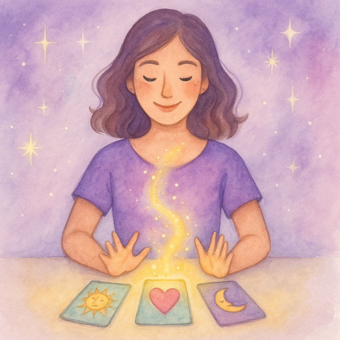 Lerne, wie du deine innere Sprache verstehst, Mythen über das Kartenlegen über Bord wirfst und die ersten Schritte des intuitiven Deutens ganz praktisch erlebst.
