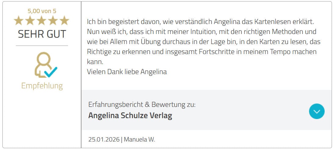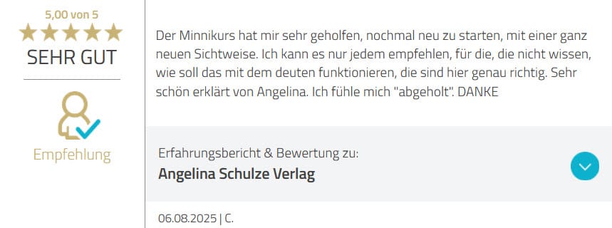 Ich bin Angelina Schulze und begleite seit 2004 überwiegend Frauen dabei, Karten klar, nachvollziehbar und ohne Bedeutungschaos zu deuten. In dieser Zeit habe ich Bücher geschrieben, eigene Kartendecks veröffentlicht und Tausende Menschen in Kursen, Coachings und meiner Community unterstützt.